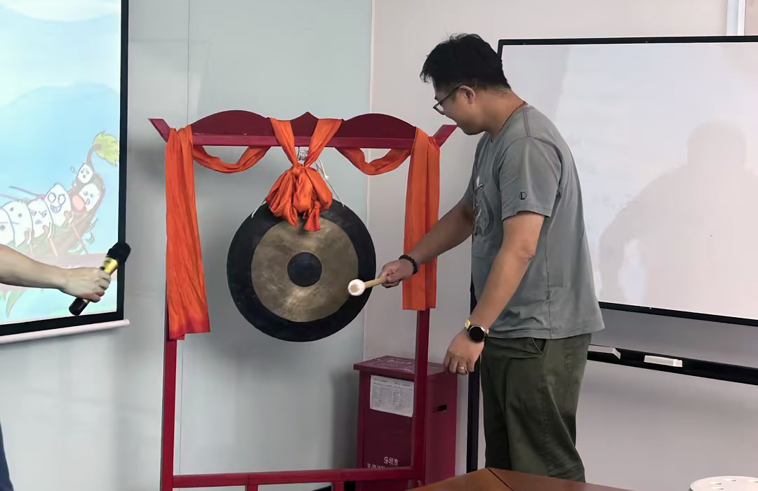 隨后,馮總邀請(qǐng)國(guó)內(nèi)銷售團(tuán)隊(duì)代表上臺(tái)敲鐘,表彰銷售團(tuán)隊(duì)重大銷售訂單突破。