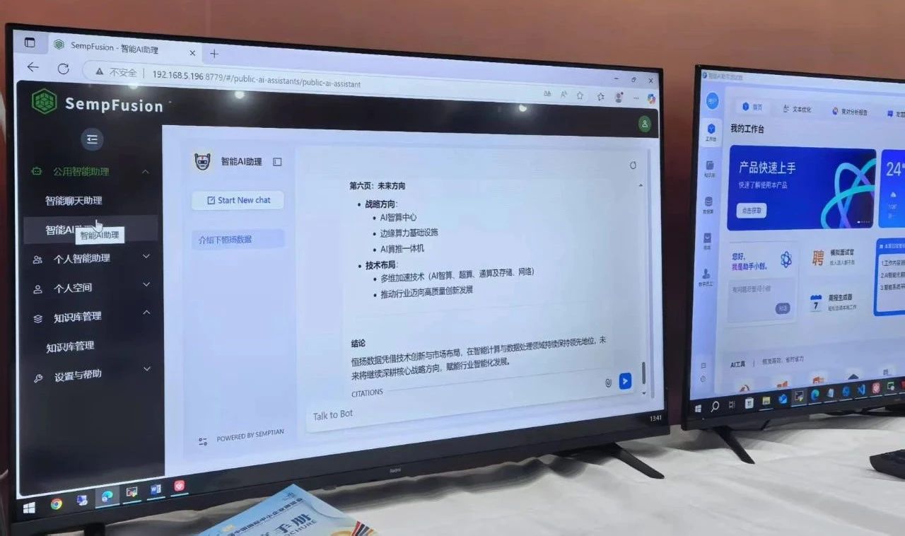 在中博會現(xiàn)場,恒揚(yáng)數(shù)據(jù)通過實景演示展示了產(chǎn)品在現(xiàn)實辦公場景下的應(yīng)用,用戶可現(xiàn)場體驗借助SK90一體機(jī)與SempFusion智能體,實現(xiàn)會議紀(jì)要生成與關(guān)鍵內(nèi)容提取,智能AI多模態(tài)交互、AI數(shù)據(jù)分析、日常辦公工作流自動生成與執(zhí)行等功能。