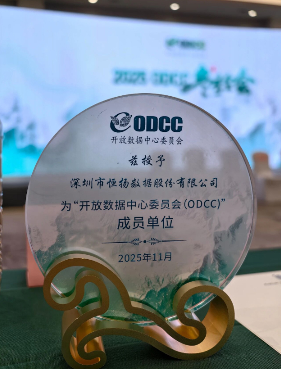 返回列表11月5-7日,2025ODCC冬季全會在廣西崇左隆重召開。這場匯聚國內(nèi)頂尖算力產(chǎn)業(yè)鏈上下游企業(yè)的行業(yè)盛會,圍繞計算、網(wǎng)絡(luò)、邊緣算力、智能運維、存儲等核心領(lǐng)域展開近百項主題分享,大家暢所欲言為2026年算力產(chǎn)業(yè)升級錨定方向。恒揚數(shù)據(jù)作為新成員單位受邀參會,在7日上午召開的全體成員會議中,公司代表接過決策委員頒發(fā)的ODCC成員證書,正式成為ODCC大家庭中的一員。獲得這一殊榮,不僅是行業(yè)對恒揚技術(shù)實力的認(rèn)可,更標(biāo)志著公司業(yè)務(wù)與ODCC產(chǎn)業(yè)布局的深度契合,正式開啟協(xié)同創(chuàng)新的新征程。